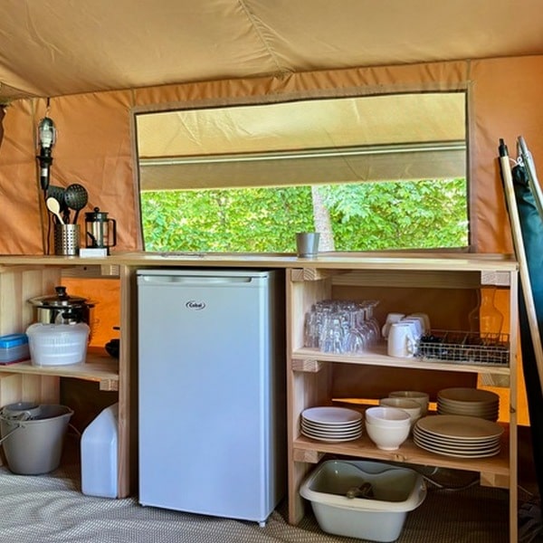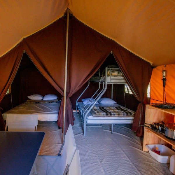 Envie de retrouver le goût de l’aventure mais sans sacrifier tout votre confort ? La tente Ponza est faite pour vous ! Pouvant accueillir 5 personnes, elle est parfaite pour une escapade entre amis ou en famille. Spacieuse, lumineuse et bien équipée, elle vous offrira une expérience camping authentique avec une petite note douillette. Le tout à quelques pas des services du camping !